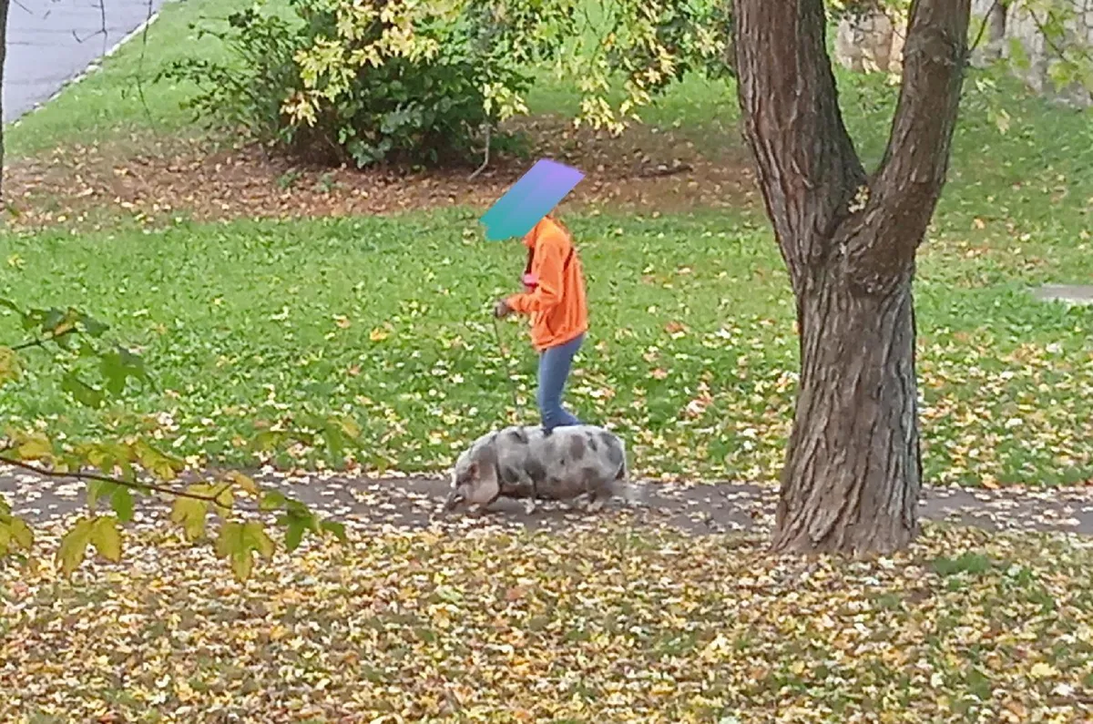Amint kiderült, a narancssárga felsős járókelő egy malaccal indult útnak, és szelte az utcákat. A hozzászólók azonnal megfejtették, hogy egy törpemalacról van szó, amelyet ugyanúgy tartanak társasházi lakásokban is, mint kutyát.