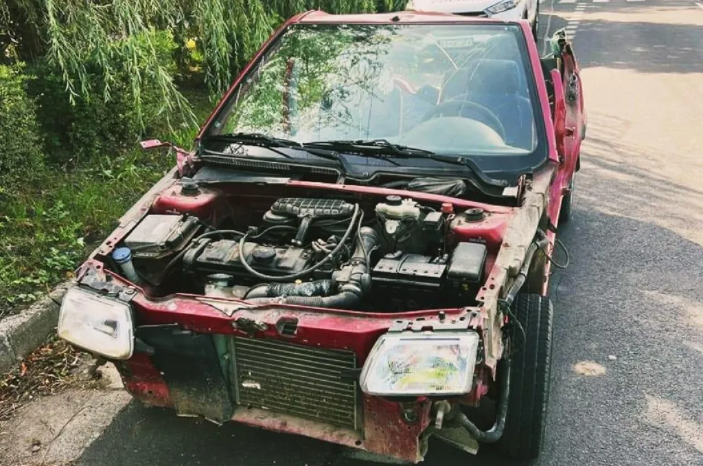 Sofőrje 50 helyett 77-tel hajtott. A különleges járművet meg is állították. Az autónak szinte minden karosszériaeleme hiányzott, már az is csoda volt, hogy gurulni tudott. A következő meglepetés akkor érte az egyenruhásokat, amikor a járművet vezető 25 éves férfitól a jogosítványát kérték. Azzal ugyanis nem rendelkezett. Az autó rendszámát szintén nem lehetett ellenőrizni, mivel azt sem rakták fel a kocsira. Bár nem is nagyon lett volna mihez rögzíteni.