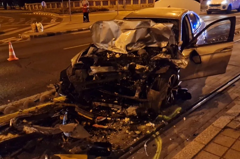 Helyszíni fotókon az éjszakai villamosbaleset, súlyos vége lett egy BMW-s gyorsulásának
