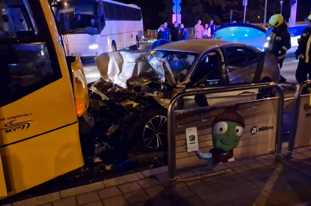 Auónak ütközött, majd a megállóban várakozó 4-es villamosnak csapódott egy autó csütörtök este a Petőfi híd budai hídfőéjénél. A Budapest Környéke úgy tudja, a BMW sofőrje a megengedett sebességnél gyorsabban hajtott, és utolérte az előtte jóval lassabban haladó Suzuki Swiftet. A fiatal, rutintalan sofőr későn és rosszul reagált a helyzetre, így az előtte haladó kocsiba csapódott.