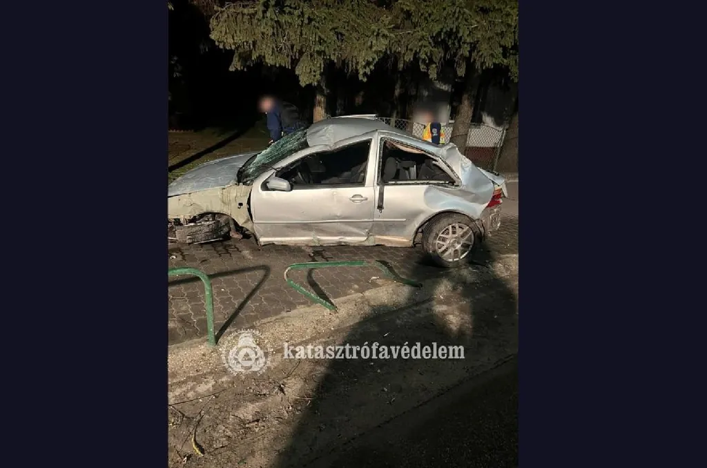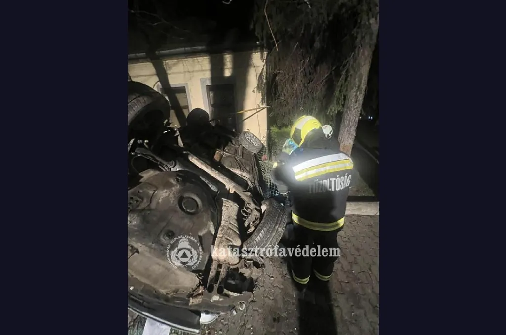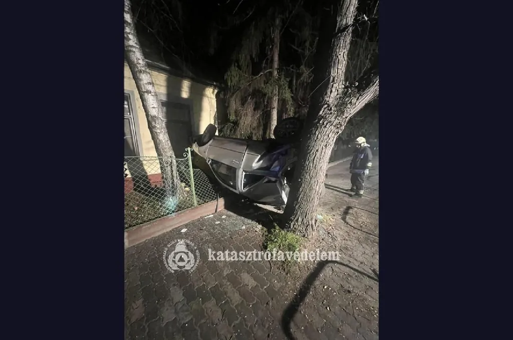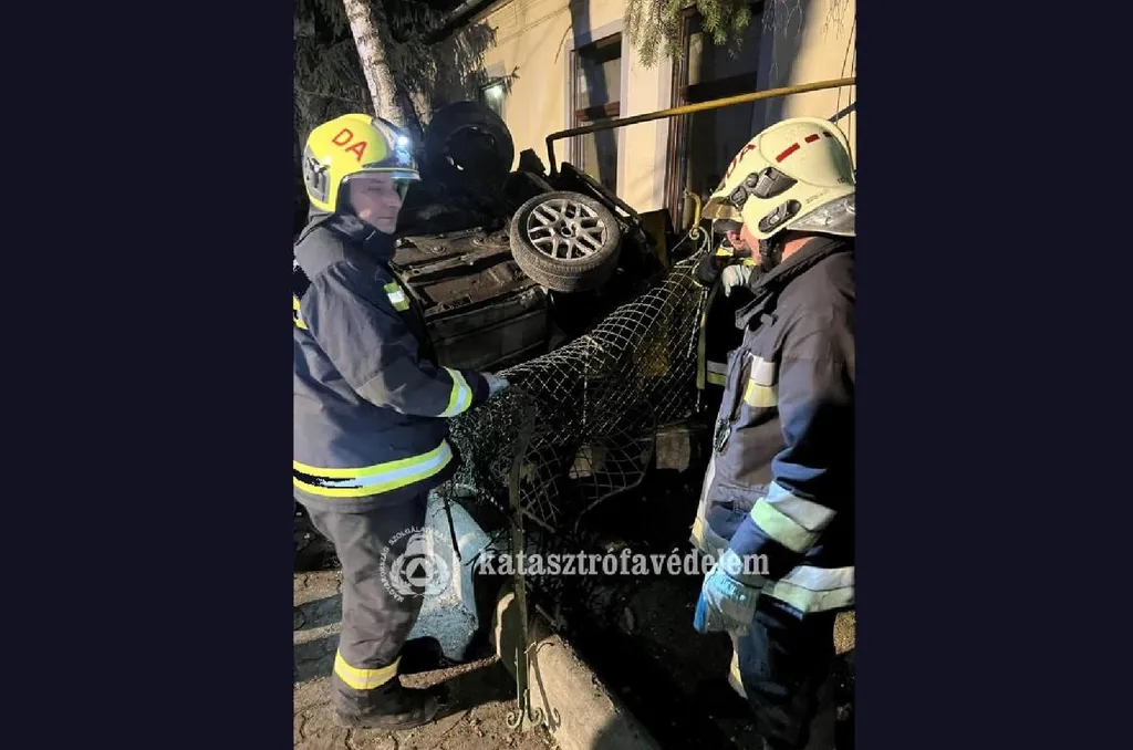 Fejjel lefelé, egy ház oldalában állt meg egy autó Dabason - Fotók