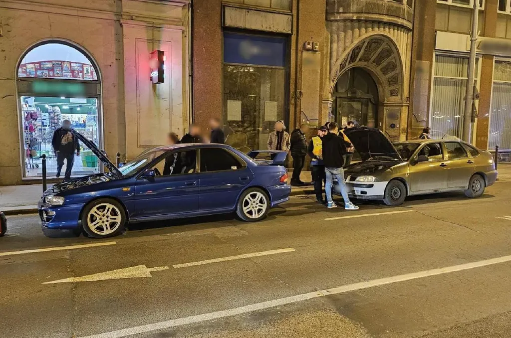 Rendőrök álltak körbe egy Lamborghinit a Széchenyi István téren, fotó készült a rendőri akcióról