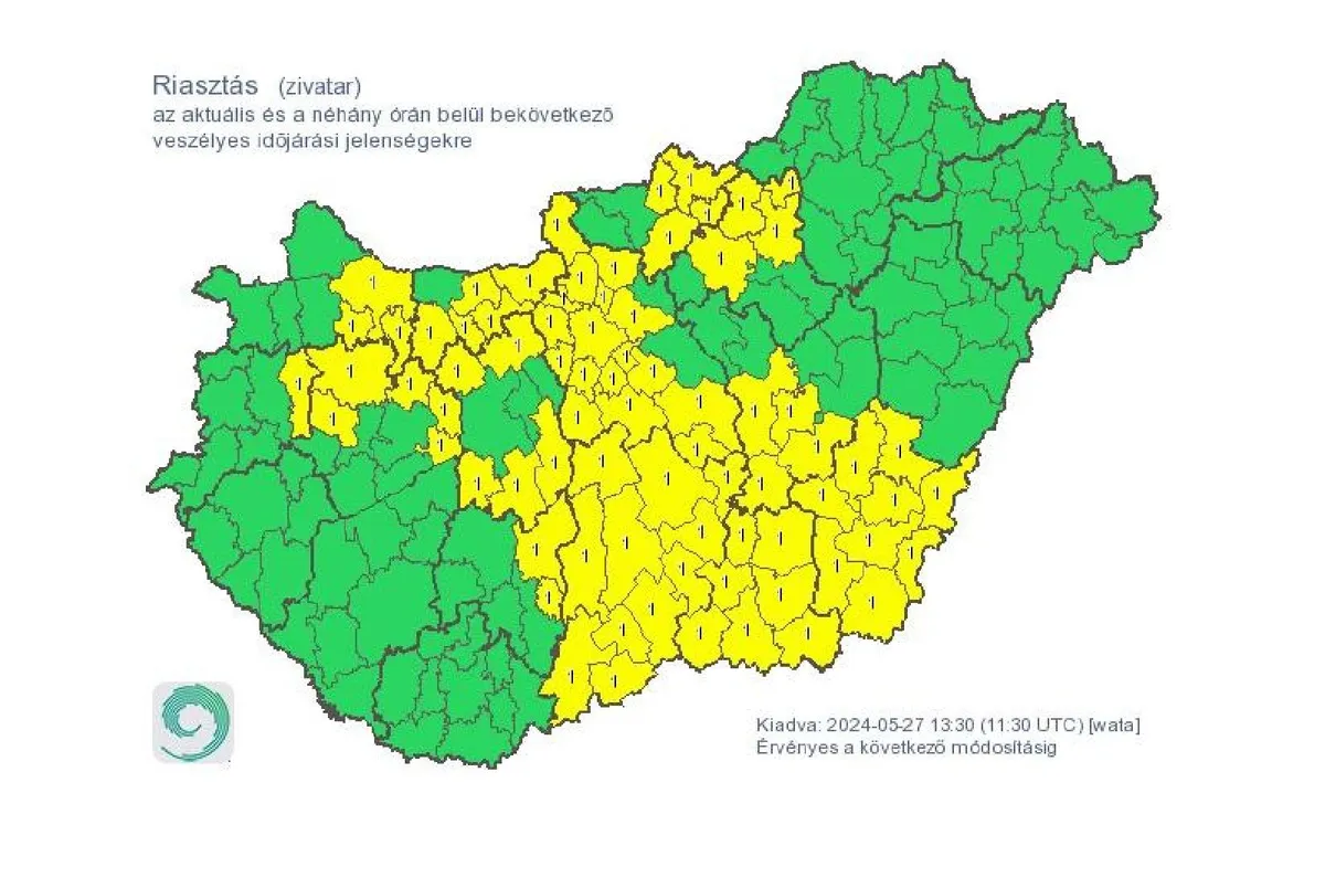 A HungaroMet tájékoztatása szerinthétfő estig főként az Alföldön, az Északi-középhegység nyugati felében, később pedig a középső területeken, valamint a Dunántúl északkeleti részén és a nyugati határnál számíthatunk zivatarra. Az égszakadást erős, 60-70 kilométer per órás széllökések kísérhetik. Délkeleten komolyabb esőzésre is van kilátás, ahol a déli órák környékén viharos, 70-80 kilométer per órás szél és jégeső is kialakulhat.