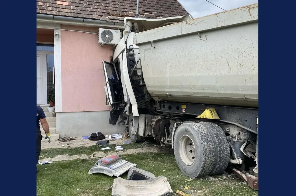 Úgy tudjuk, a teherautó defektet kapott, ami miatt a jármű irányíthatatlanná vált, ezért hajthatott a ház oldalába. Értesüléseink szerint a baleset után a sofőrt a mentők kórházba szállították.