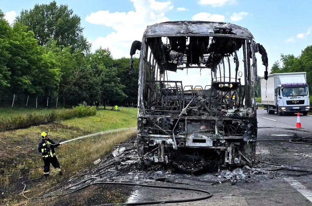 A román rendszámú buszban négy férfi utazott, akik még időben ki tudtak ugrani, ők nem sérültek meg.