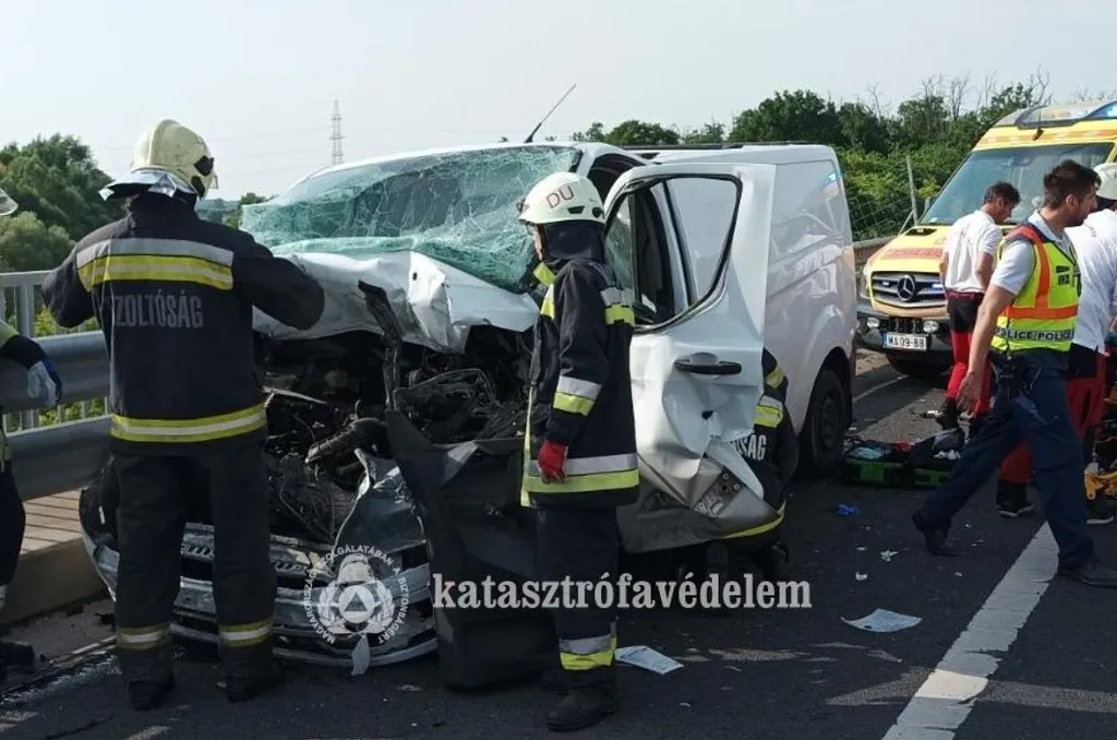 A furgon sofőrje a roncsok közé szorult, őt a pusztaszabolcsi és a dunaújvárosi hivatásos tűzoltók feszítővágóval és feszítőhengerrel szabadították ki a vezetőfülkéből, majd áramtalanították a rakomány nélküli teherautót is.