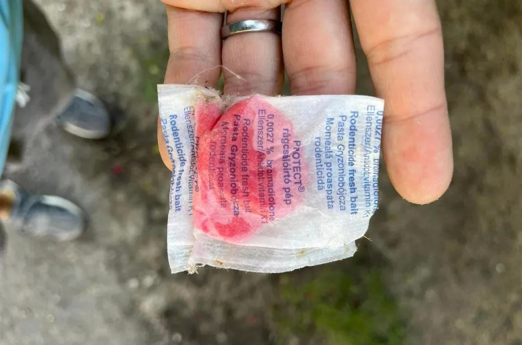 A gazda nem engedte az állatnak, hogy a szájába vegye azt, és nagyon jól tette, hiszen közelebbről vizsgálva kiderült, hogy „rágcsálóirtó pép” van a csomagra írva.