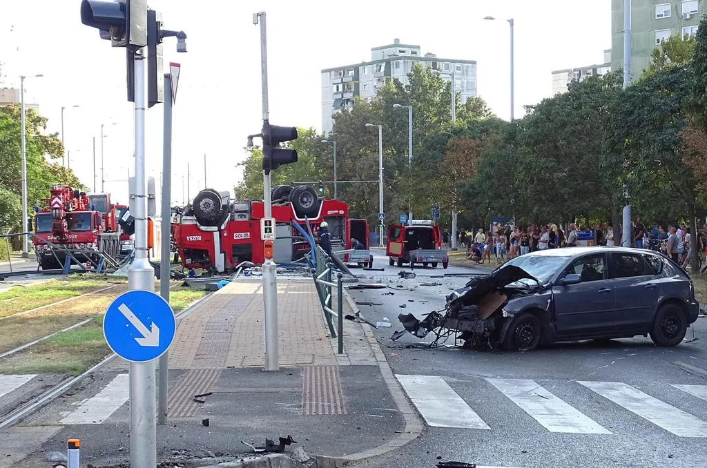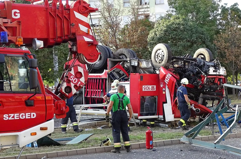 A Szegeder.hu hírportál beszámolója szerint a felboruló tűzoltóautó a közeli villamosmegállóba csapódott.