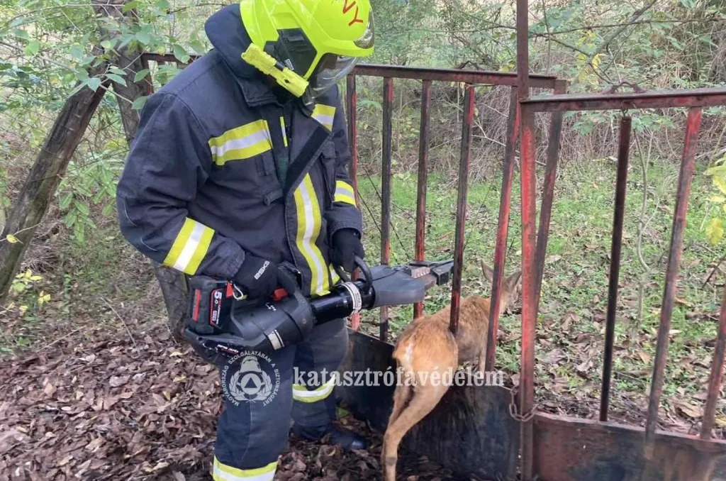 A nyíregyházi hivatásos tűzoltók siettek a vad segítségére, akik feszítővágóval kiszabadították. A négylábú nem sérült meg, és rögtön el is szaladt a helyszínről.