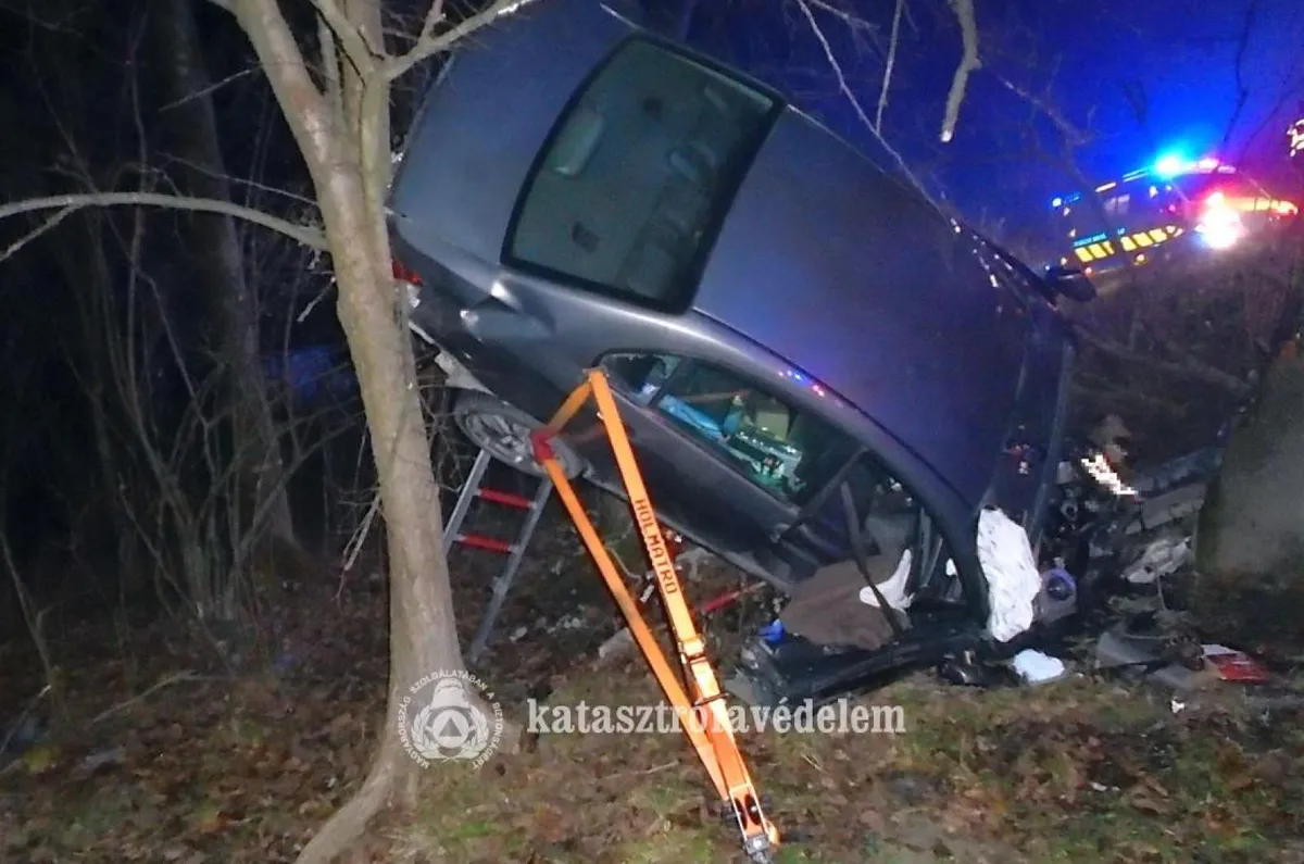 Letért az útról, fának hajtott, majd fennakadt rajta egy kocsi szerdán este a 5804-úton, az adorjási elágazásban. A Baranya vármegyei katasztrófavédelem tájékoztatása szerint az autóban ketten utaztak, a sofőr pedig kirepült az ütközés erejétől, míg utasa beszorult a roncsba.