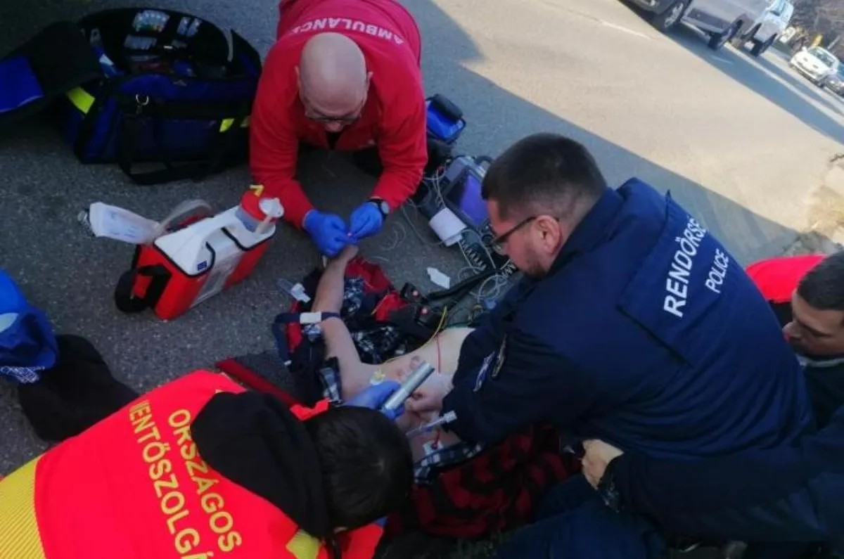 Időközben a mentők is megérkeztek, majd műszerekre kötötték az idős férfit, valamint defibrillátorral próbálkoztak, de a férfi keringése továbbra sem tért vissza. Az egyik rendőr ennek ellenére sem adta fel, és egészen addig végezte a mellkaskompressziót, míg a nyugdíjas szíve újra meg nem dobbant.