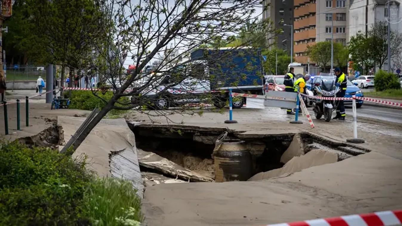 Hatalmas lyuk tátong a Róbert Károly körúton, megbénult a közlekedés – Fotók
