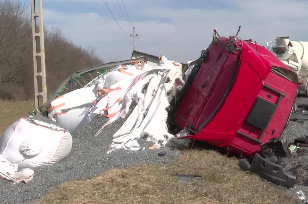 Frontálisan ütközött egy beton mixer és egy kamion a 3-as számú főúton Felsőzsolca külterületén péntek reggel.