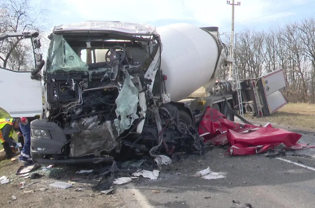 A betonkeverő sofőrje egy 60 év körüli férfi nem élte túl a balesetet a kamiont vezető férfit életveszélyes állapotban vitték kórházba a mentők. Mindkettőjüket csak a tűzoltók tudták kiszabadítani a roncsokból. Az első vizsgálatok szerint a betonszállító sofőrje hibázott áttért a szembe sávba. Ezért történt a frontális baleset.