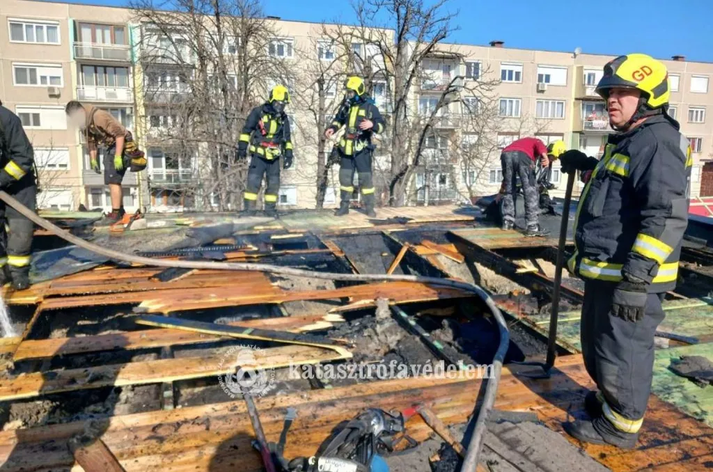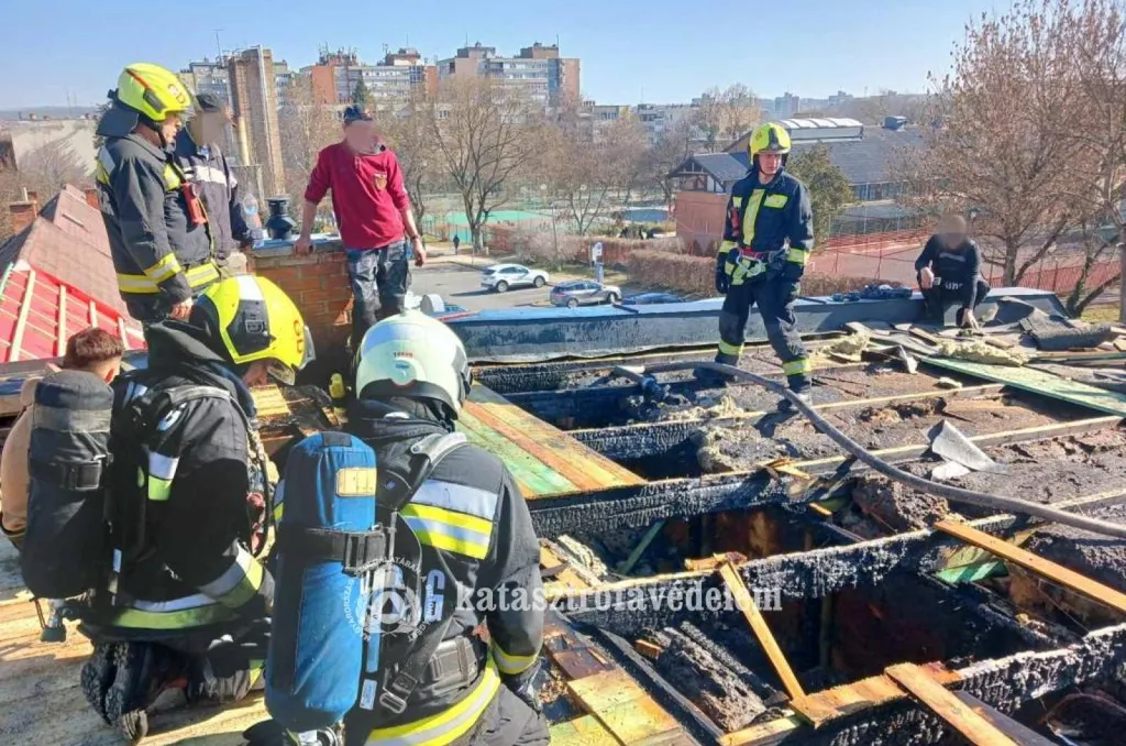 A szakemberek először megbontották a fedést, majd megakadályozták a tűz továbbterjedését és eloltották a lángokat, végül átvizsgálták az épületet. Sérültről szerencsére nem számoltak be.