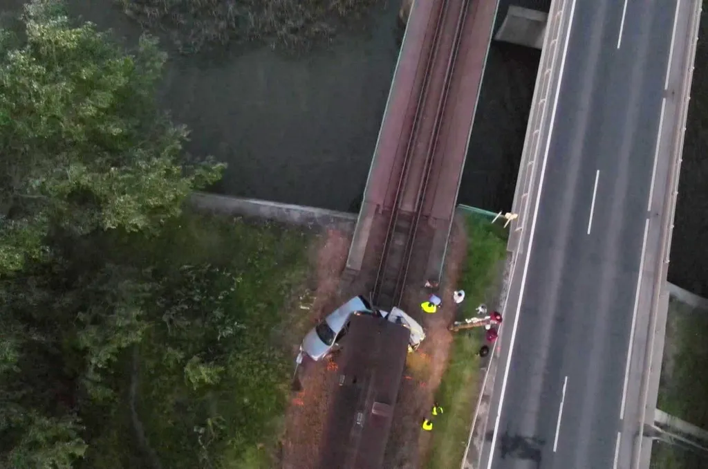 Drónfotón ahogy letarolta az utánfutós kocsit a vonat Poroszlón