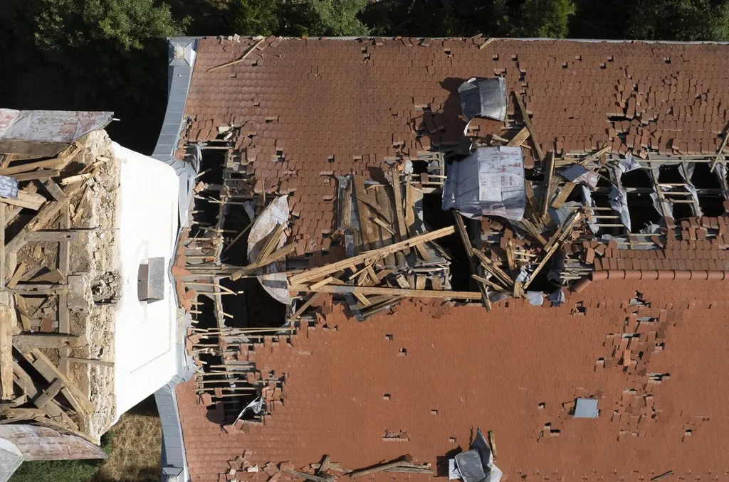 A közlés szerint a szél tőből kitépte az 1892-ben épült torony sisakját, a ledőlő torony egyik része beszakította a templom tetejét, másik része a templom melletti utcára zuhant. Személyi sérülés nem történt - írták.