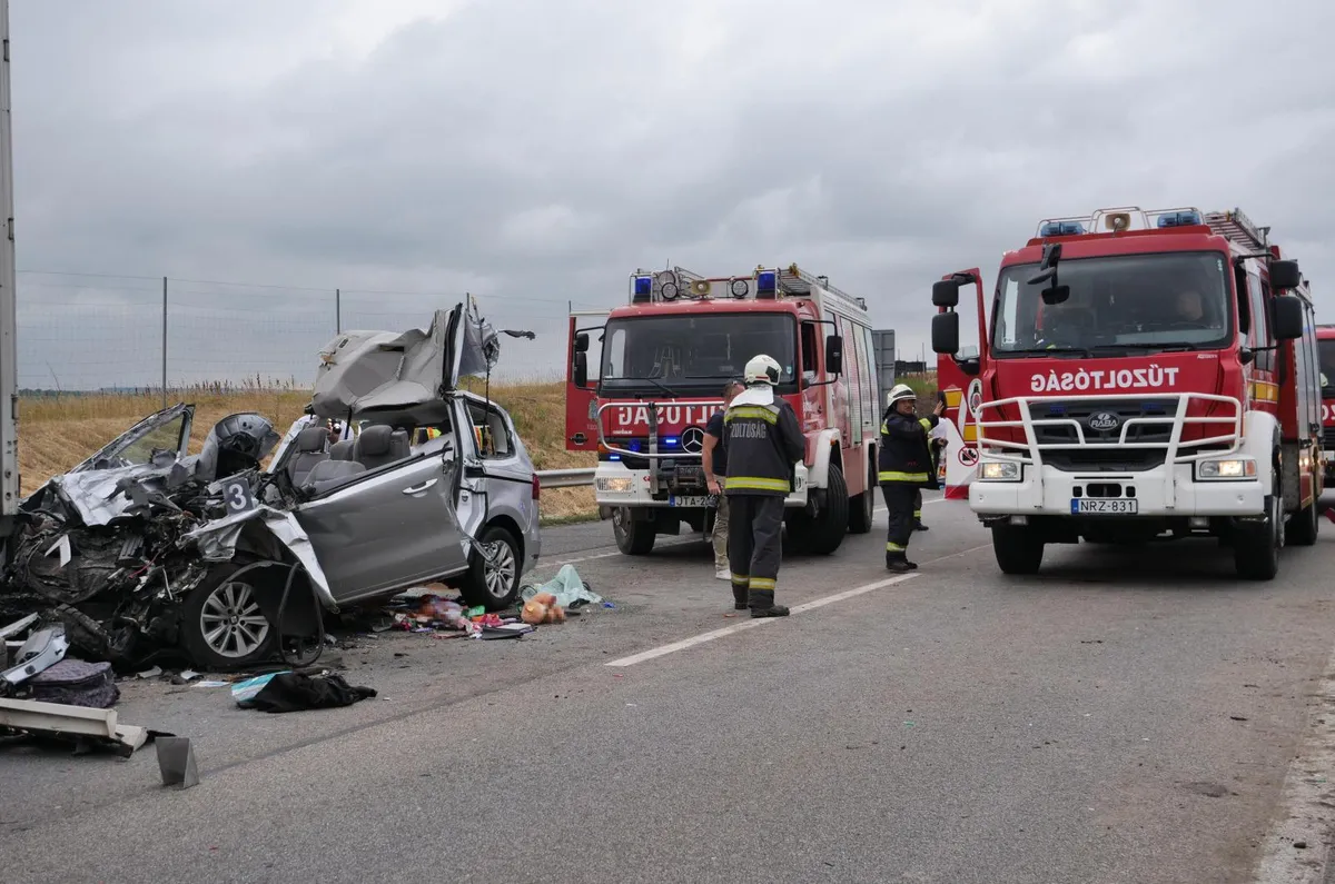 A helyszíni fotók alapján az autó a felismerhetetlenségig összezúzódott.