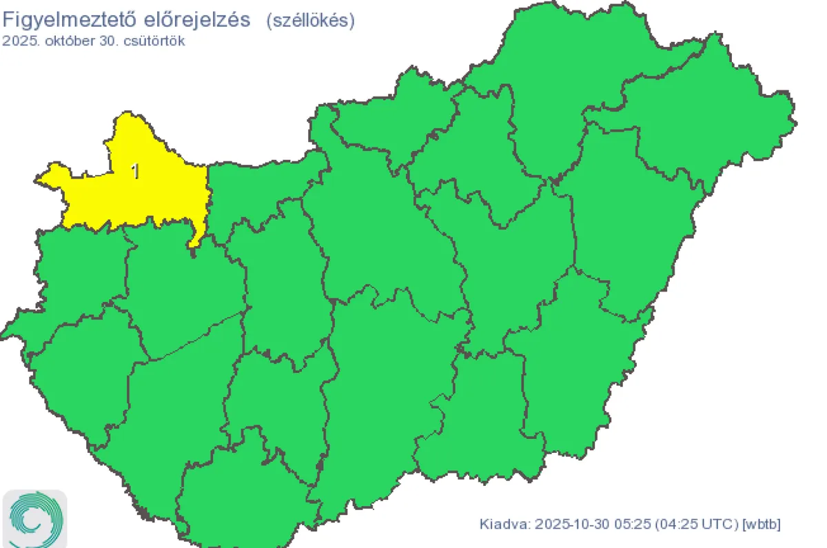 Elsőfokú riasztást adtak ki Győr-Moson-Sopron vármegyére, ugyanis itt akár a legerősebb széllökések meghaladhatják a 70 kilométer per órát is.