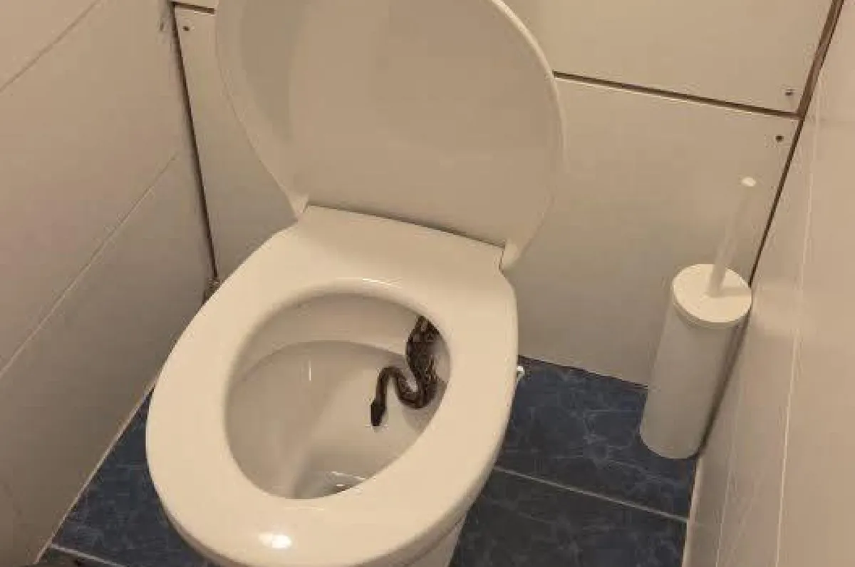 A toalettet felnyitva egy királypitonnal nézett farkasszemet, ami bár elsőre ijesztőnek tűnhet, szerencsére nem mérgeskígyó.