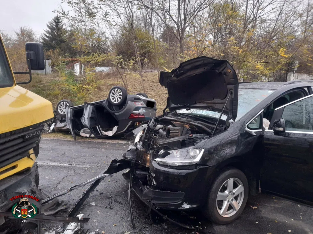 Az összetört autók között egy kitört kerekű Porsche Panamera luxusautót is felfedeztek a Váli Önkormányzati Tűzoltók, akik drámai fotókat osztottak meg a helyszínről.