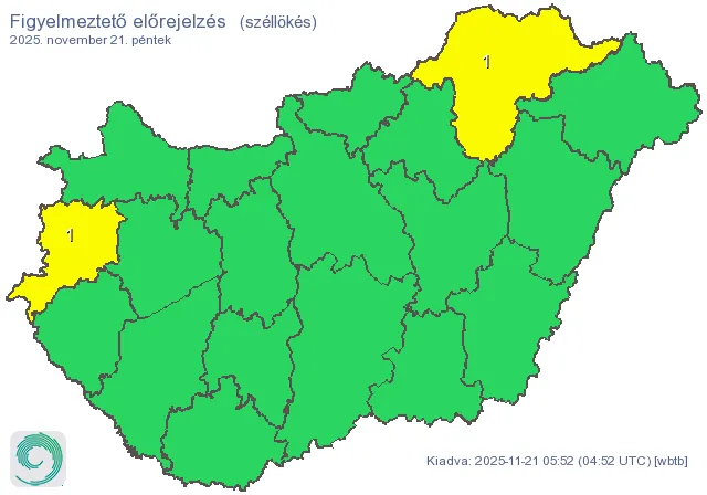 Emellett szél is rendkívül erős lesz: péntek délutántól az Északi-középhegység keleti felén, estétől pedig már Kőszeg környékén is akár 70 km/h-t meghaladó északi széllökésekre lehet számítani. Emiatt újabb két vármegyére Borsod-Abaúj-Zamplén és Vas vármegyékre adtak ki figyelmeztető előrejelzést.