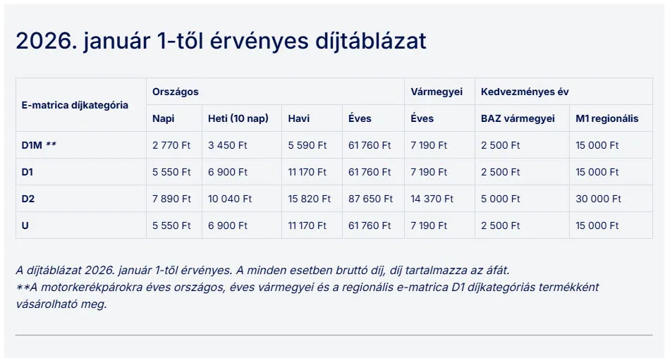 Új matricatípusok érkeznek, bővülnek a fizetős szakaszok, és több kedvezmény is életbe lép: Bevezetik az M1 regionális matricát, amely jelentősen megkönnyítheti a helyiek közlekedését, és jön a kedvezményes Borsod-Abaúj-Zemplén vármegyei matrica is. Ez utóbbit kifejezetten a térség gépjárművezetői fogadhatják örömmel.