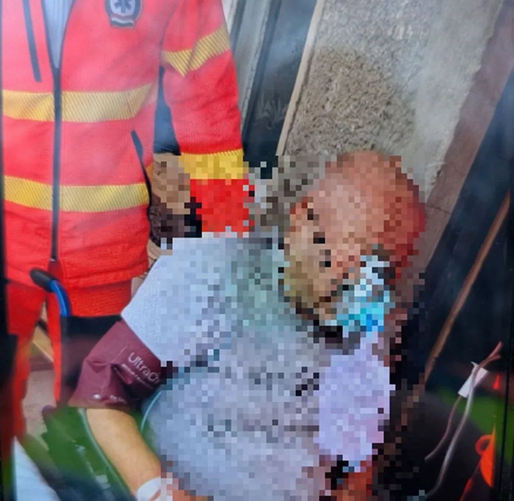 Így az egyik helyiségben, a padlón találták meg oxigénhiányos, életveszélyes állapotban a félig kihűlt, vérző férfit, aki leesett az ágyról.