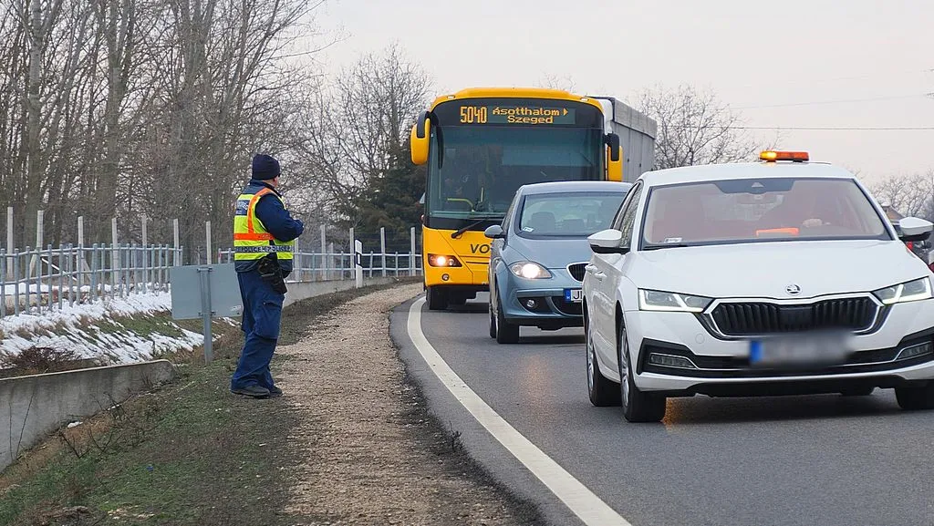 Mint kiderült, a Csongrád-Csanád vármegyei Mórahalomnál, az 55-ös főút 17-es kilométerszelvénynél egy utánfutós kocsi Szeged felé tartott, amikor egy balra ívelő kanyarban átsodródott a szembe sávba, majd a buszmegálló melletti korlátot átszakítva az útszéli árokba csapódott.