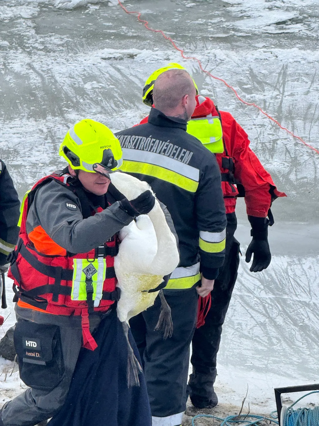 A kimentett hattyút ezt követően a madármentők vették át további ellátásra.