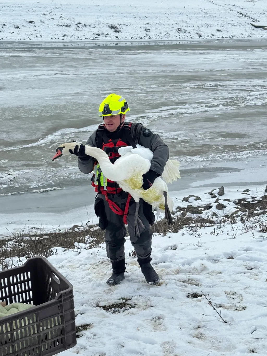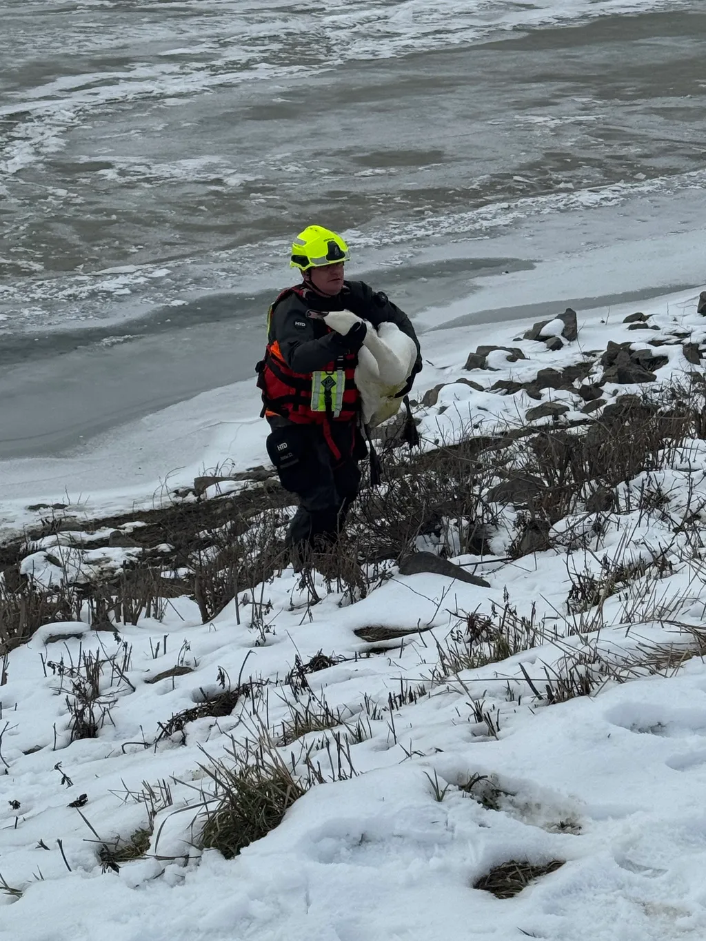 Az Életjel Mentőcsoport tájékoztatása szerint a pénteki mentéshez jégrőlmentő tutajt használtak, mellyel az egységek elérték és biztonságosan kiemelték a madarat.
