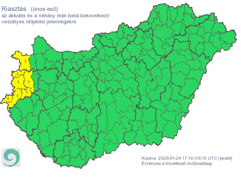 Elsőfokú, citromsárga riasztást adott ki ónos eső veszélye miatt a HungaroMet.