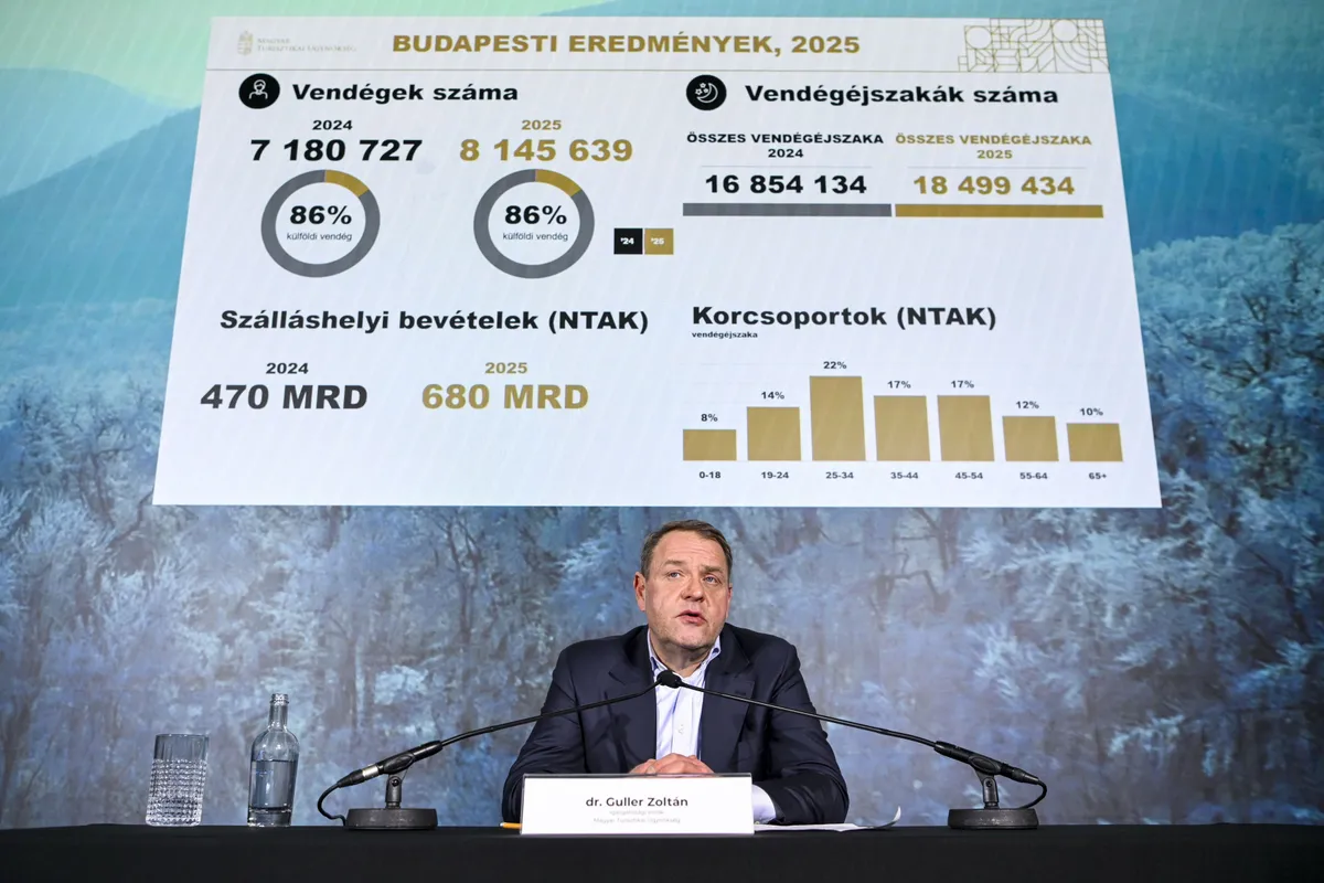 Ismertette, hogy a vidéki Magyarország is jól teljesített, több mint 12 millió vendéget köszöntöttek, 9 millió belföldi, és csaknem 3,5 millió külföldi érkezett a turisztikai térségekbe 2025-ben.