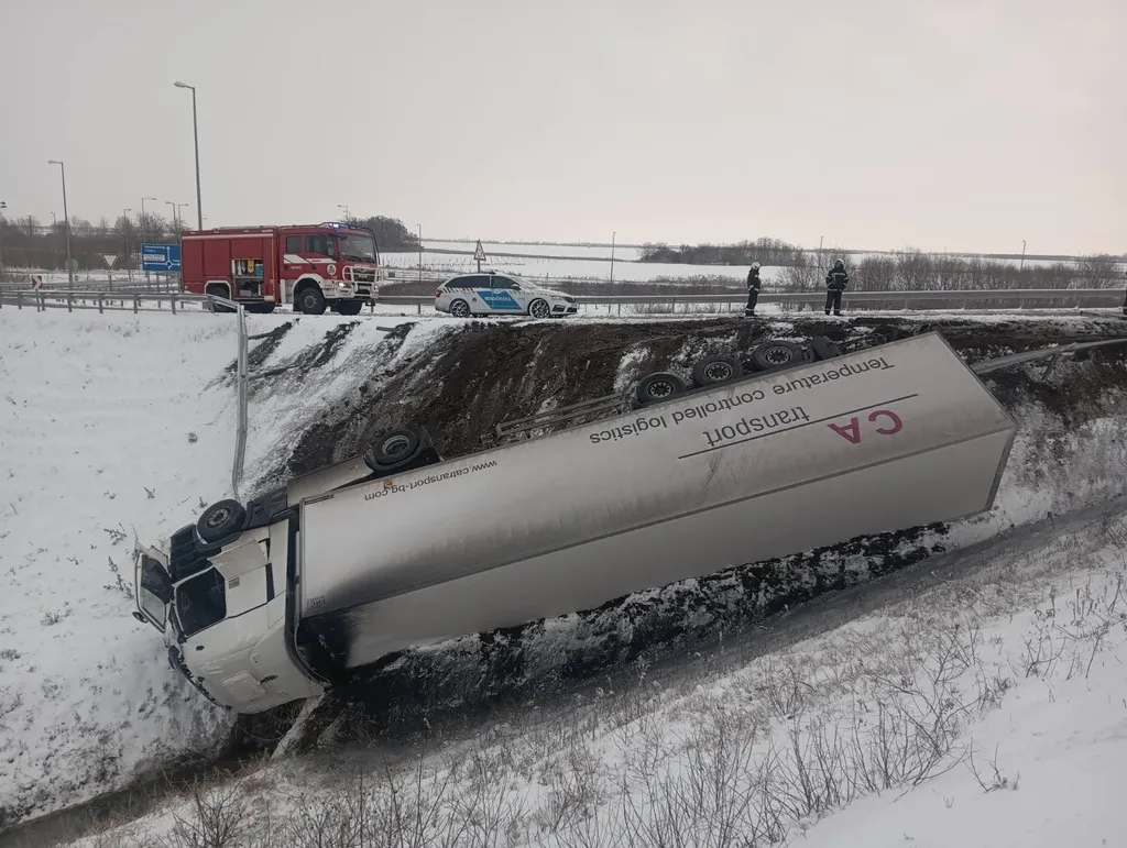 Az M1-es autópályán több kilométeres torlódás alakult ki szabálytalanul előző kamionok miatt, a tűzoltók munkáját pedig kidőlt fák és közúti balesetek is nehezítették.