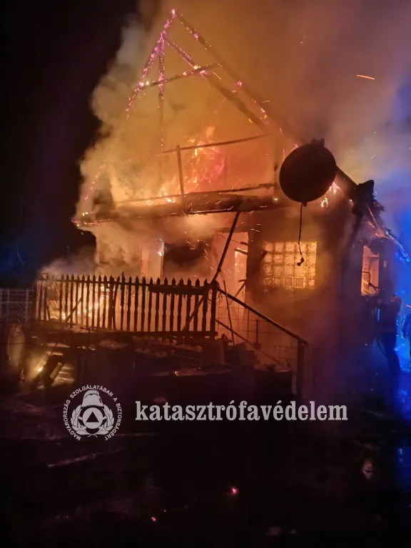 A hatvan négyzetméteres épület már teljes egészében égett, egy gázpalack pedig felhasadt, mire a tűzoltók a helyszínre értek.