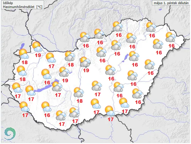 A munka ünnepén derült, napos idő várható, a legmagasabb nappali hőmérséklet 15 és 19 fok között várható. Csapadék nem valószínű.