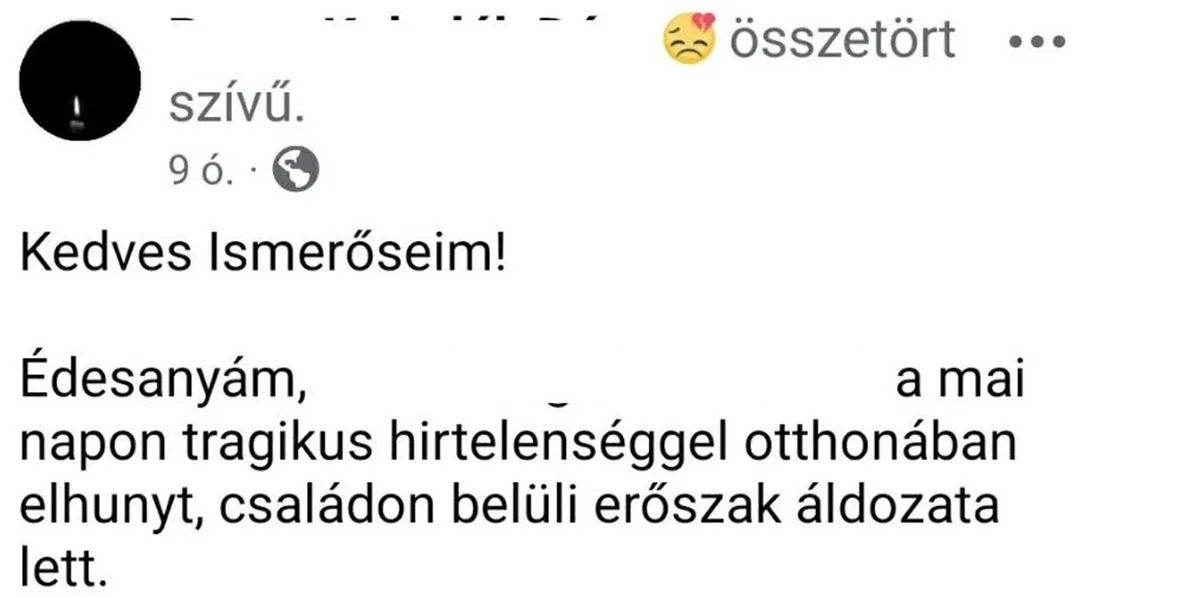 Az áldozat lánya a közösségi médiában közölte a sajnálatos hírt: