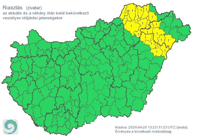 Kiadták a citromsárga riasztást, ugyanis az az északkeleti megyékben, majd a nyugati határ közelében is zivatarok és apró szemű jég is eshet – közölte a Hungaromet.