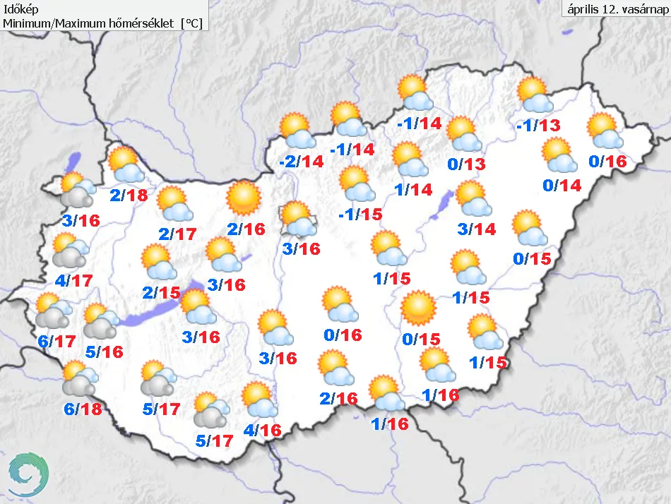 A HungaroMet előrejelzéséből kiderül, hogy kellemes, tavaszi időjárás lesz Magyarország teljes területén április 12-én. Ez azért is jó hír, mert noha az emberek többsége akár gumicsizmában is elmenne voksolni, biztosan kijelenthető, hogy vannak páran, akiket komolyan befolyásol az, amit akkor látnak, ha kinéznek az ablakon a választás napján. Ezúttal viszont nem lehet kifogás az eső, a hó vagy a szél, szép idő lesz, ami könnyen lehet, hogy a részvételi adatokon is meglátszik majd.