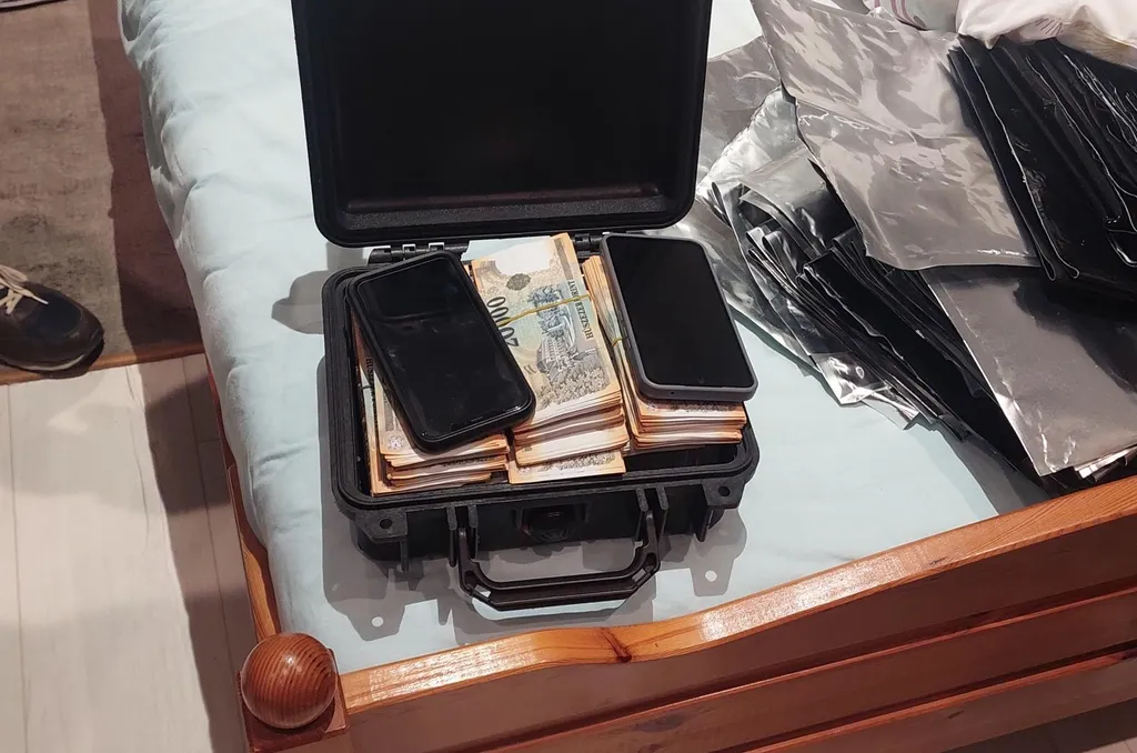 V. Sándort a nyomozók október elsején Dunakeszin fogták el. A lakásán kutatást tartottak, melynek során kábítószergyanús zöld növényi anyagot és fehér port, mérleget, önzáró tasakokat, mobiltelefonokat és közel 48 millió forint készpénzt foglaltak le – közölte a rendőrség.