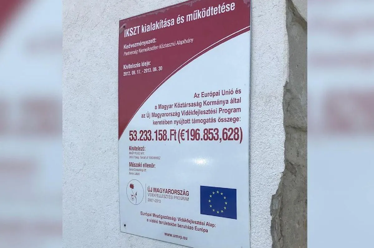 Az épület oldalára kihelyezett tábla szerint a szintén erre a címre bejegyzett Partnerség Kiemelten Közhasznú Alapítvány kapott 53 millió forintot az Új Magyarország Vidékfejlesztési Programban. Így álcázták Gyurcsányék a titkos pénzügyi központot, és persze brüsszeli pénzből építkeztek.