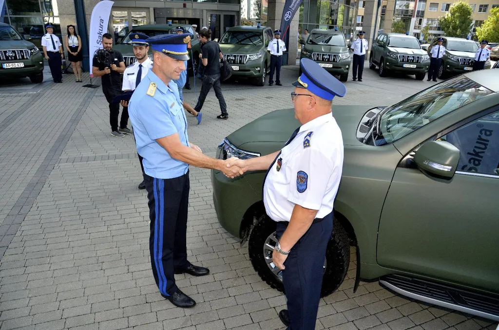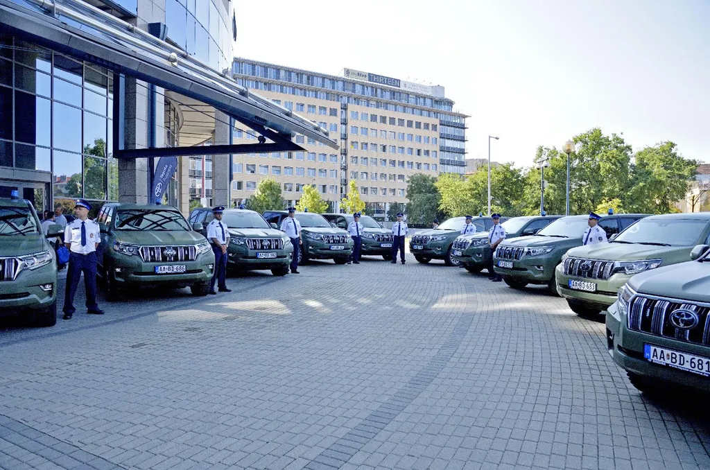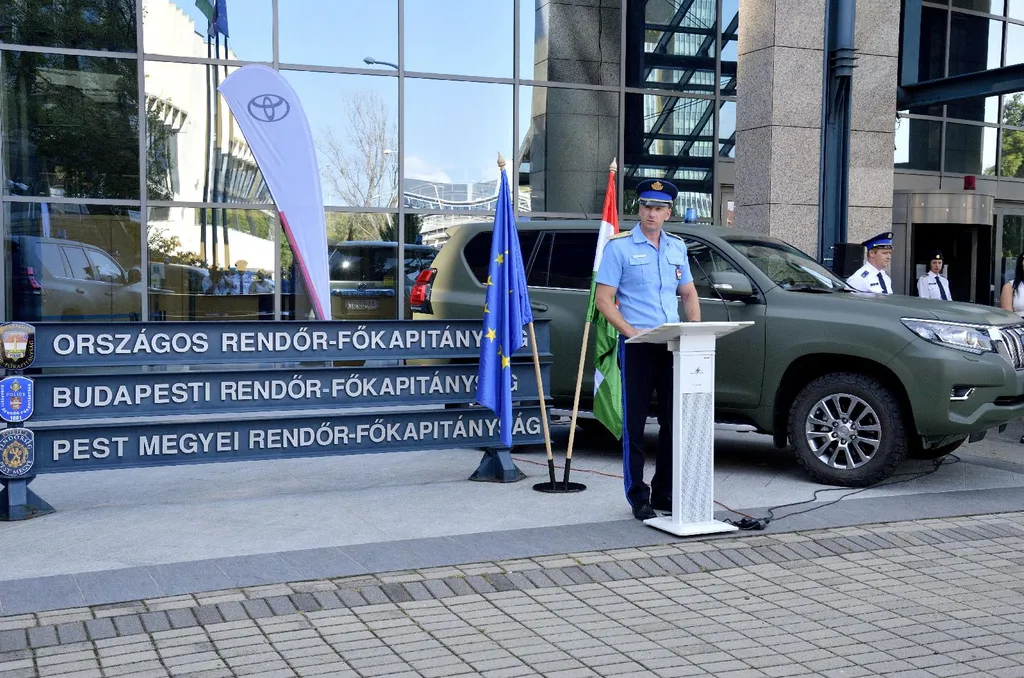 A Toyota Central Europe képviseletében László Richard országigazgató arról beszélt, hogy a Toyota Land Cruiser a világ egyik legnagyobb múltú nehézterepjárója, több mint 10 millió darab készült belőle, és 1951 óta gyártják. Ez a típus a legextrémebb körülmények között is helyt áll az afrikai sivatagoktól a sarkvidékeken át az esőerdőkig - folytatta, reményét fejezve ki, hogy a rendőrség is évtizedekig fogja tudni használni a most átadott járműveket.