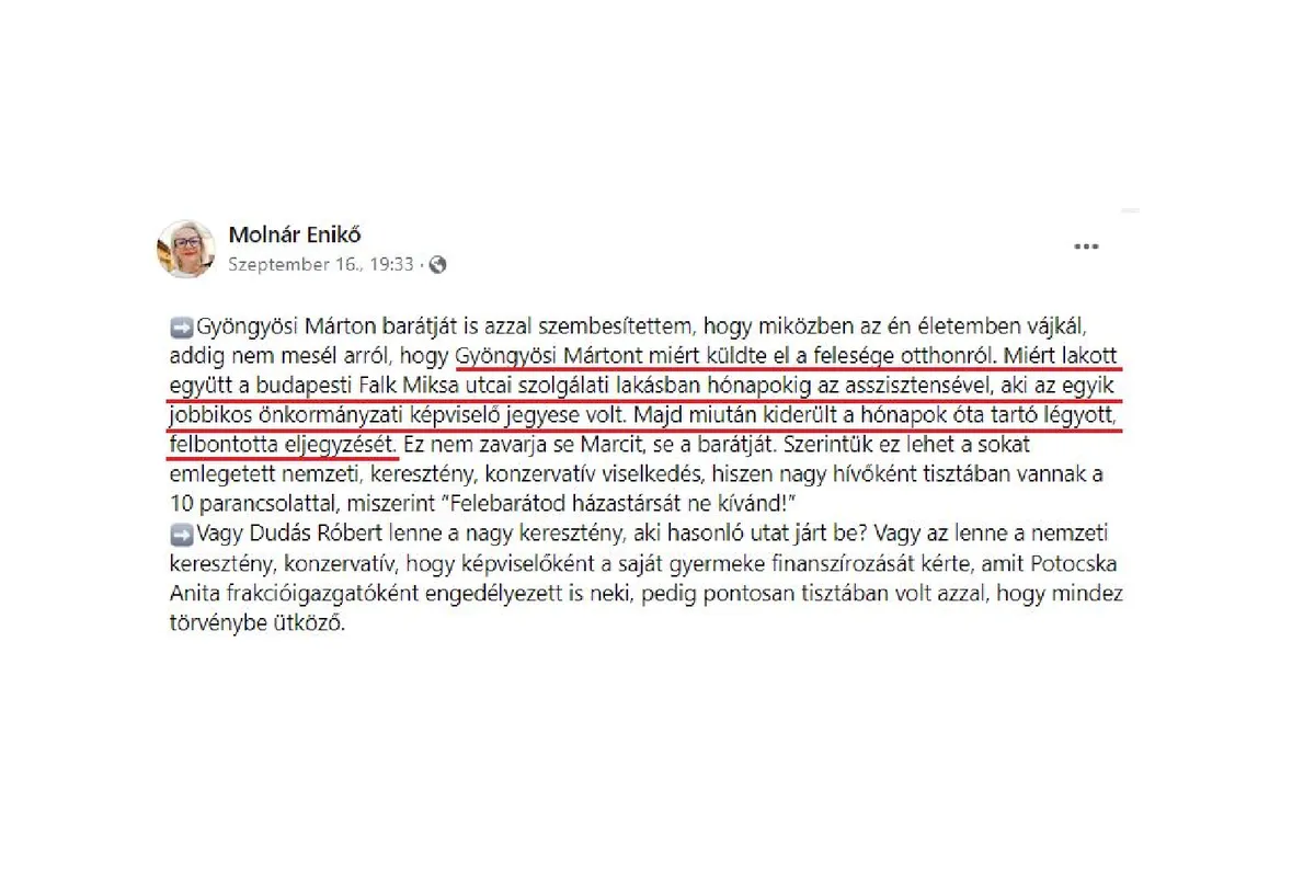 Sajátos módon éppen Jakab korábbi kabinetfőnöke és szeretője robbantotta az újabb "privátbombát" amikor kiposztolta, hogy az új pártelnök Gyöngyösi is közpénzből bérelt lakást magának és pártaktivista élettársának.