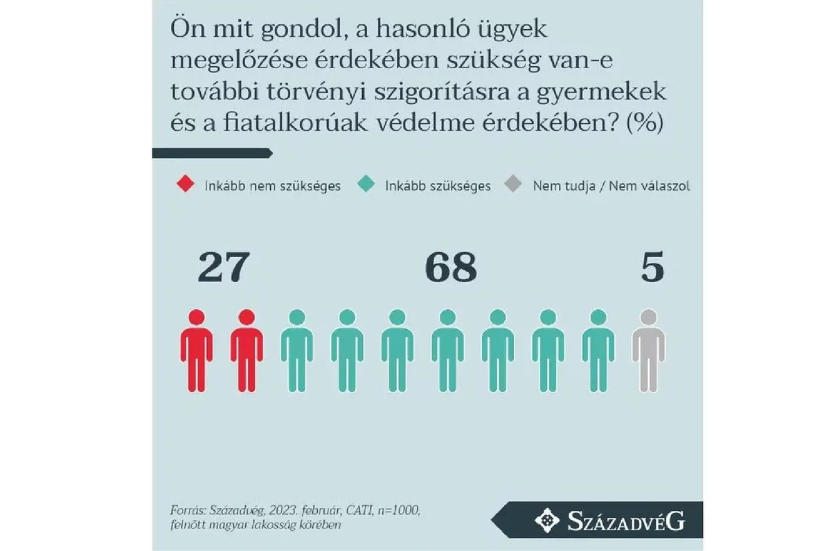 A Századvég az esetre tekintettel feltérképezte, hogy a lakosság mit gondol arról, ha felnőttek, illetve oktatók fiatalkorúakkal folytatnak szexuális kapcsolatot, kitérve az erre vonatkozó jogi szabályozás szigorításának kérdésére.