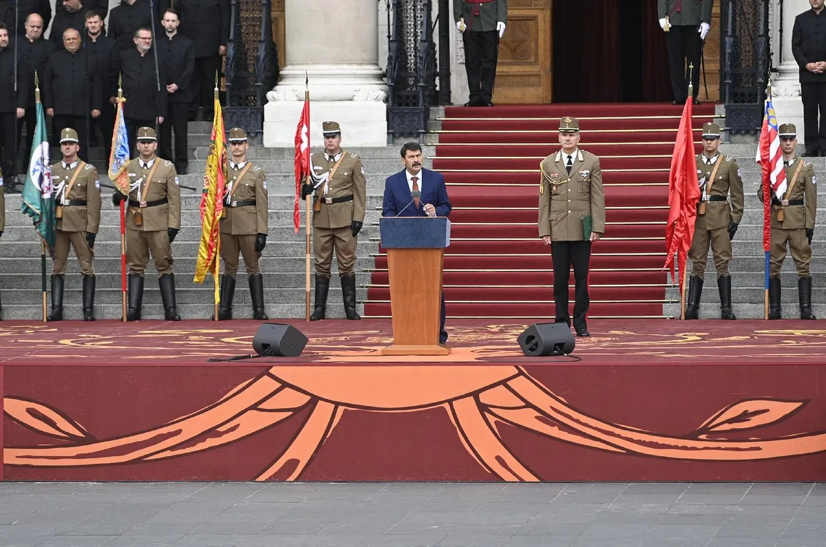 "Csak parancs van, küzdelem van, helytállás van" - mondta, majd példaként említette, hogy a katonáknak biztosítaniuk kellett a kórházak rendkívüli működését, az oltópontokon irányítani a tanácstalan embereket, ellenőrizni a tilalmak betartását, összességében "óvni-védeni egy láthatatlan ellenséggel harcoló hazát".