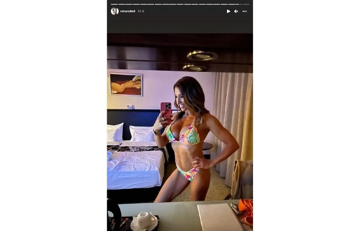 A fitnesz királynő egy gyönyörű spahotelből jelentkezett be, méghozzá egyenesen a hálószobájából posztolt egy hihetetlenül szexi fotót. Az Instagram sztorijába feltöltött képen az erotika és a művészet is helyet kapott a leleményes kompozíciónak köszönhetően. Réka ugyanis úgy pózolt falatnyi bikinijében, hogy a fotón ne csak az ő tökéletes alakja tündököljön, de az ágya fölött függő aktkép is látszódjon.