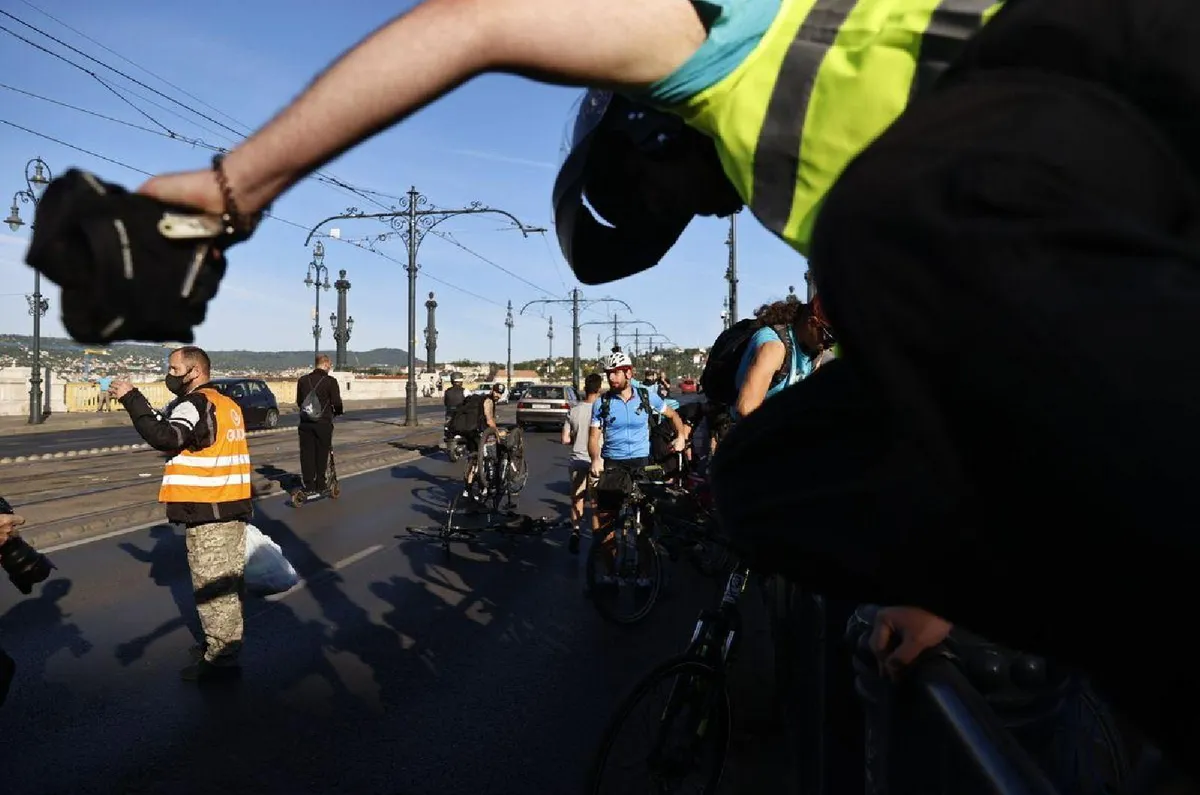Háromnegyed órával a kezdés után a tüntetők végül lezárták a Margit hidat. A nagyjából 350 összegyűlt ember a pesti oldalról a híd első 300 méterét állta el, a felhajtóhoz futárok hátitáskáit rakták gúlákba. A rendőrök már a Nyugati Pályaudvarnál elterelik a forgalmat, a blokád miatt.