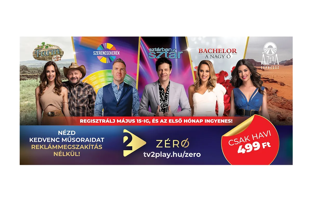 Azok az előfizetők, akik május 15-ig regisztrálnak a https://tv2play.hu/zero oldalon a Zéró szolgáltatásra, az első hónapban térítésmentesen vehetik azt igénybe.