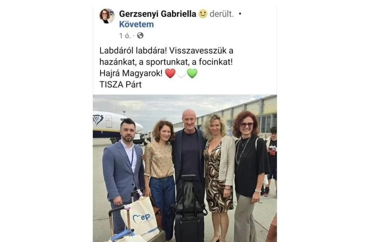 „Labdáról labdára! Visszavesszük a hazánkat, a sportunkat, a focinkat! Hajrá, magyarok! TISZA Párt” – írta szombati Facebook-posztjában a Marco Rossival, láthatóan egy repülőtéren készült közös fotója mellé Gerzsenyi Gabriella, a Tisza Párt európai parlamenti képviselője. Rajtuk kívül még két hölgy és egy fiatalember látható a képen, amely ezzel a posztszöveggel sokak számára azt is sugallhatja, hogy a magyar labdarúgó-válogatott szövetségi kapitánya a baloldali párt aktivistája lett. Egy újabb posztban aztán némi magyarázkodás következett, miszerint a képen szereplők bemutatkoztak „Rossi kapitánynak” és engedélyt is kértek a fotó közzétételéhez, de mégis egyértelműnek látszik, hogy a magyar válogatott szakvezetőjének jóváhagyása és akarata nélkül használták politikai célra a képét. A Nemzeti Sport megkeresésére ugyanis Marco Rossi ezt közölte: