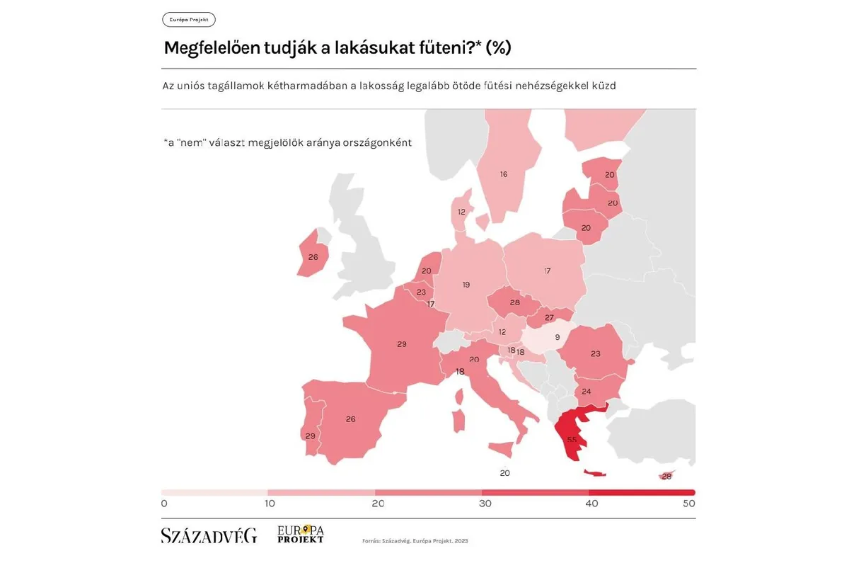 A legkiszolgáltatottabb helyzetben a görögök vannak, ahol a válaszadók több mint fele számolt be fűtési nehézségekről.